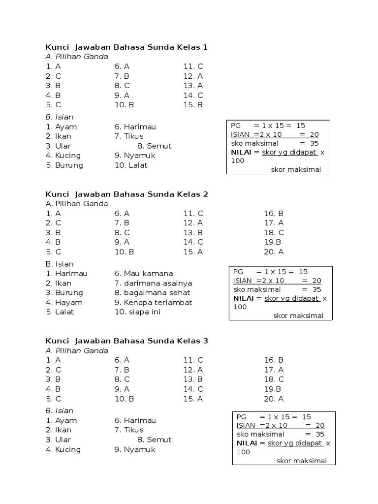 Soal uts bahasa sunda semester 2 kelas 2 sd terbaru dan kunci jawaban.